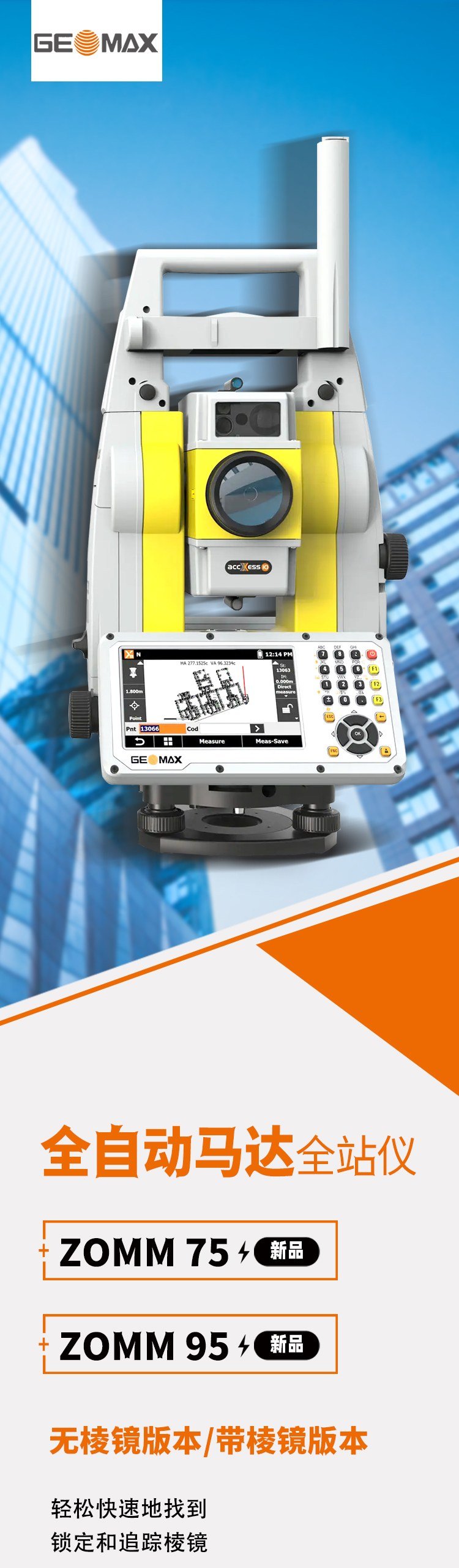 ZOOM75和ZOOM95是中緯在國(guó)內(nèi)首發(fā)的高精度的全自動(dòng)馬達(dá)全站儀,具有如下幾大特色: