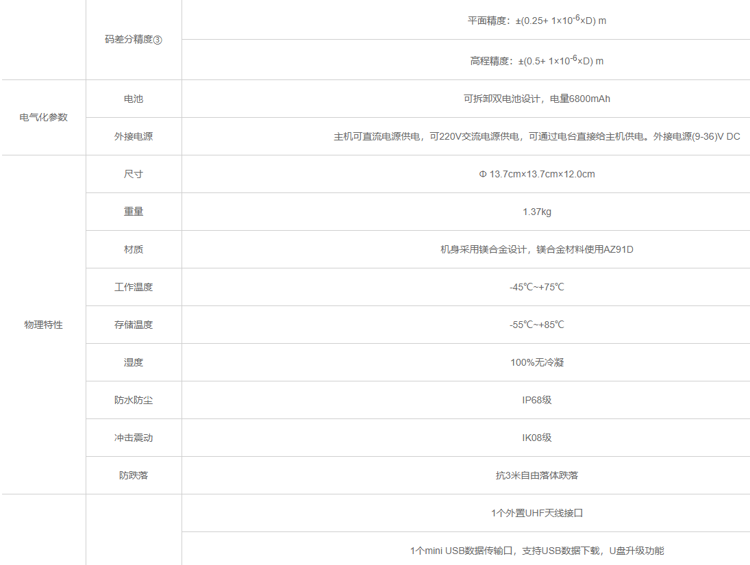 ●“北斗(Compass)+GPS”雙頻RTK,因為北斗衛(wèi)星在中國的穩(wěn)定覆蓋,比單GPS定位性能更優(yōu)●內(nèi)置網(wǎng)絡(luò)通訊模塊,可使用網(wǎng)絡(luò)RTK作業(yè)模式,更為靈巧方便●4G存儲卡并支持?jǐn)U展,高速US...